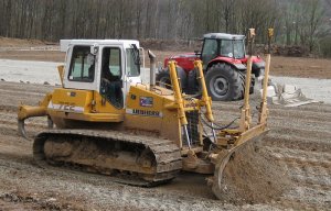 Da durch das Vermischen des Kalks mit dem Boden die grobe Vorplanie teilweise wieder verloren geht, wird zeitgleich mit dem Einfräsen die Planie des Boden-Kalkgemischs wiederhergestellt.